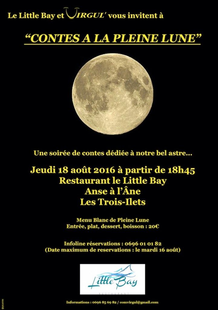 Le Restaurant le Little Bay à l’Anse à l’Âne nous fait le plaisir de nous accueillir pour l’hommage tout en contes que nous rendrons à Madame la Lune !