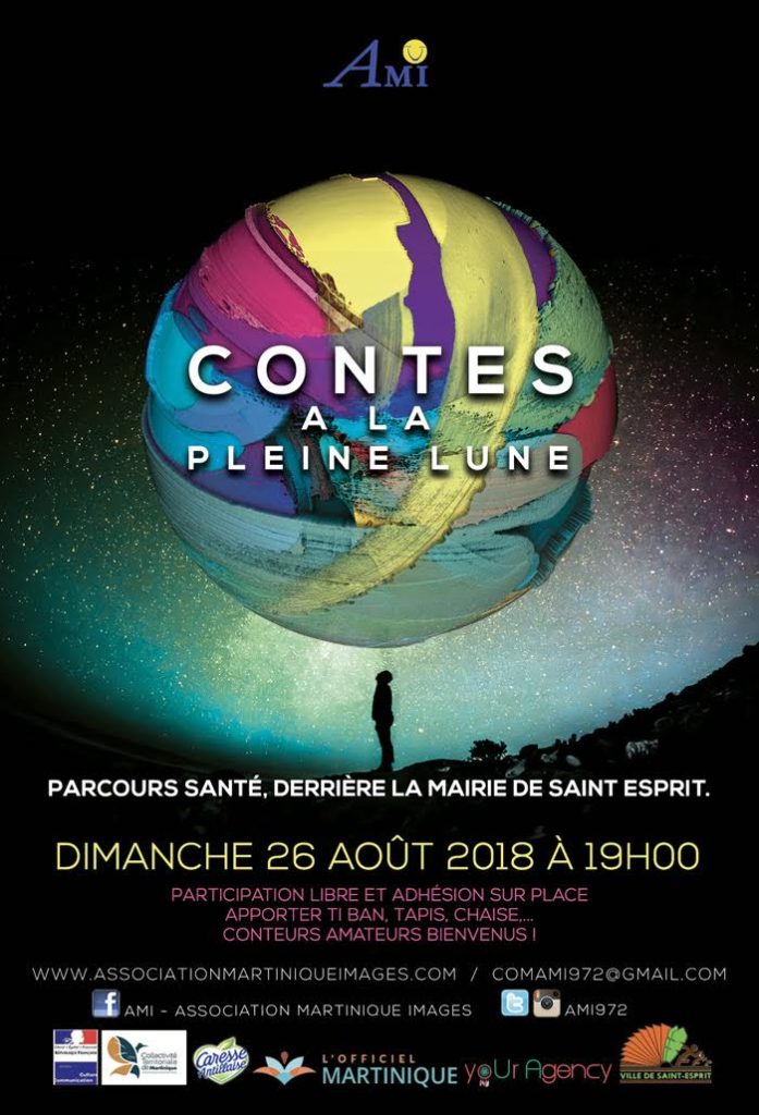 Contes à la pleine lune – Dim 26 août 2018 23 août 2018 adm Événements, Rendez-vous du mois Share This Tweet Partager Partager Email adm Articles connexes Mardi 26 janvier – Lectures Expressives d’extraits de textes de Jala Ce mardi 26 janvier 2021, AMI se joint à LAM (Les Auteurs.es de Martinique) et… 14ème Festival International Contes et Musique dans la Cité Rendes-vous du 13 au 25 octobre 2020. Contes à la Pleine Lune jeudi 1er oct 2020