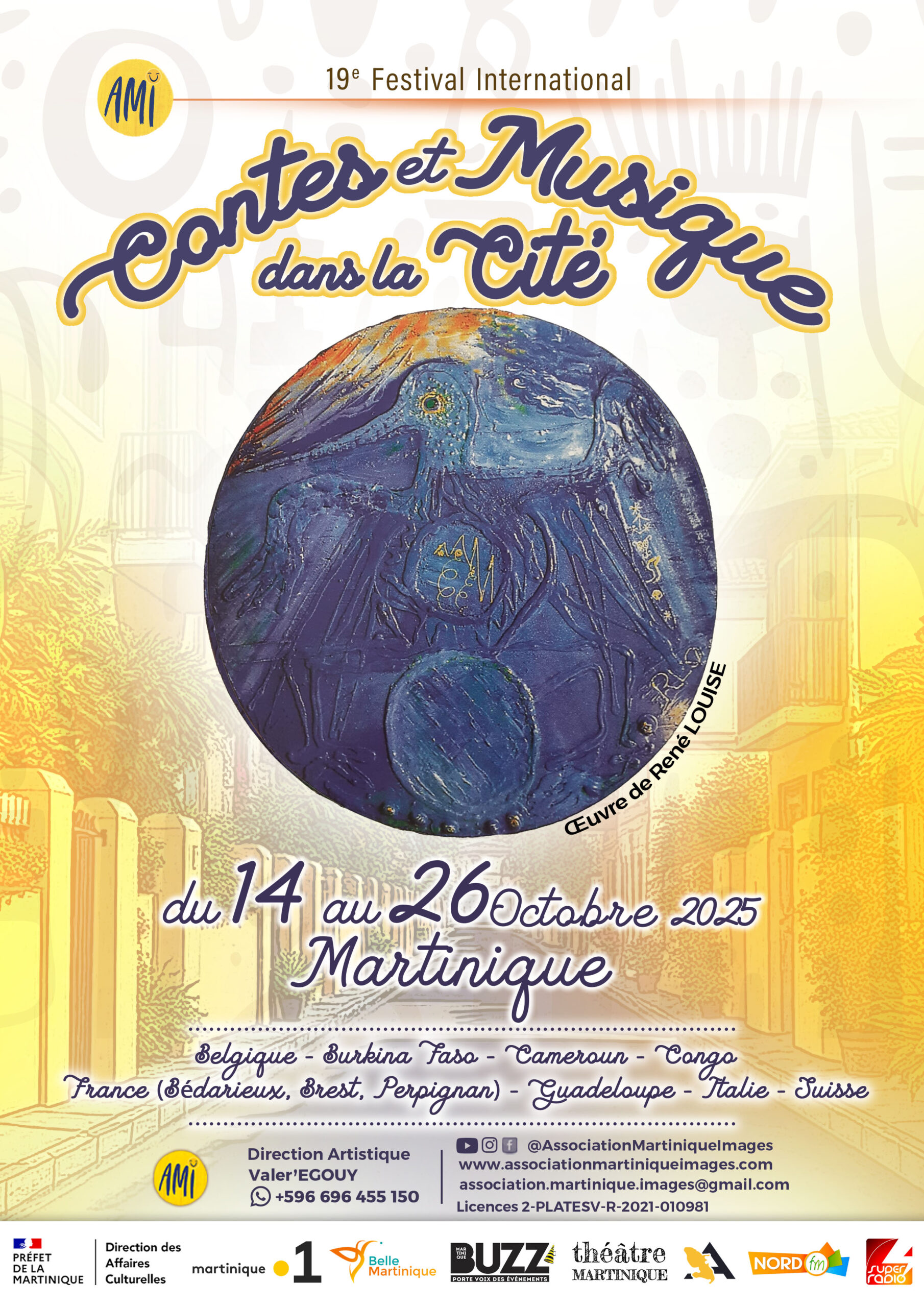 Cette dix-neuvième édition du Festival International « Contes et Musique dans la Cité » sera belle comme une avant-dernière respiration de Paroles culturelles de la Martinique avec nous AMI. Cette année, le directeur artistique (Valer’EGOUY) met à l’honneur les Artistes AMI qui participent régulièrement aux actions.